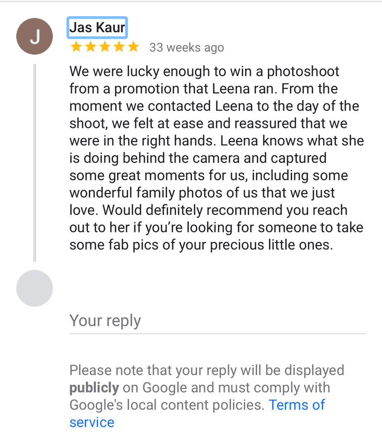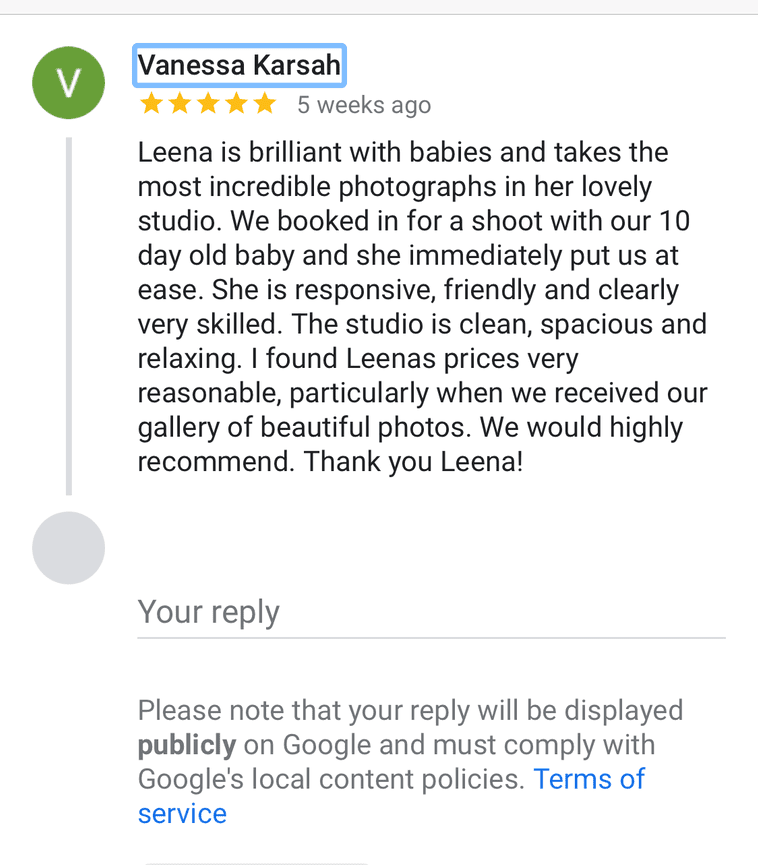 Due to a technical error at Google, the reviews kindly written by Little Ones Photography clients over the past few years (all 5 Star), are currently unavailable. Whilst Google are working to resolve this, I have posted a collection of images of the reviews here, so that you can see that your precious little one will be in very safe hands. I can of course prove that these reviews belong to Little Ones Photography, as an email confirmation is received with each review.